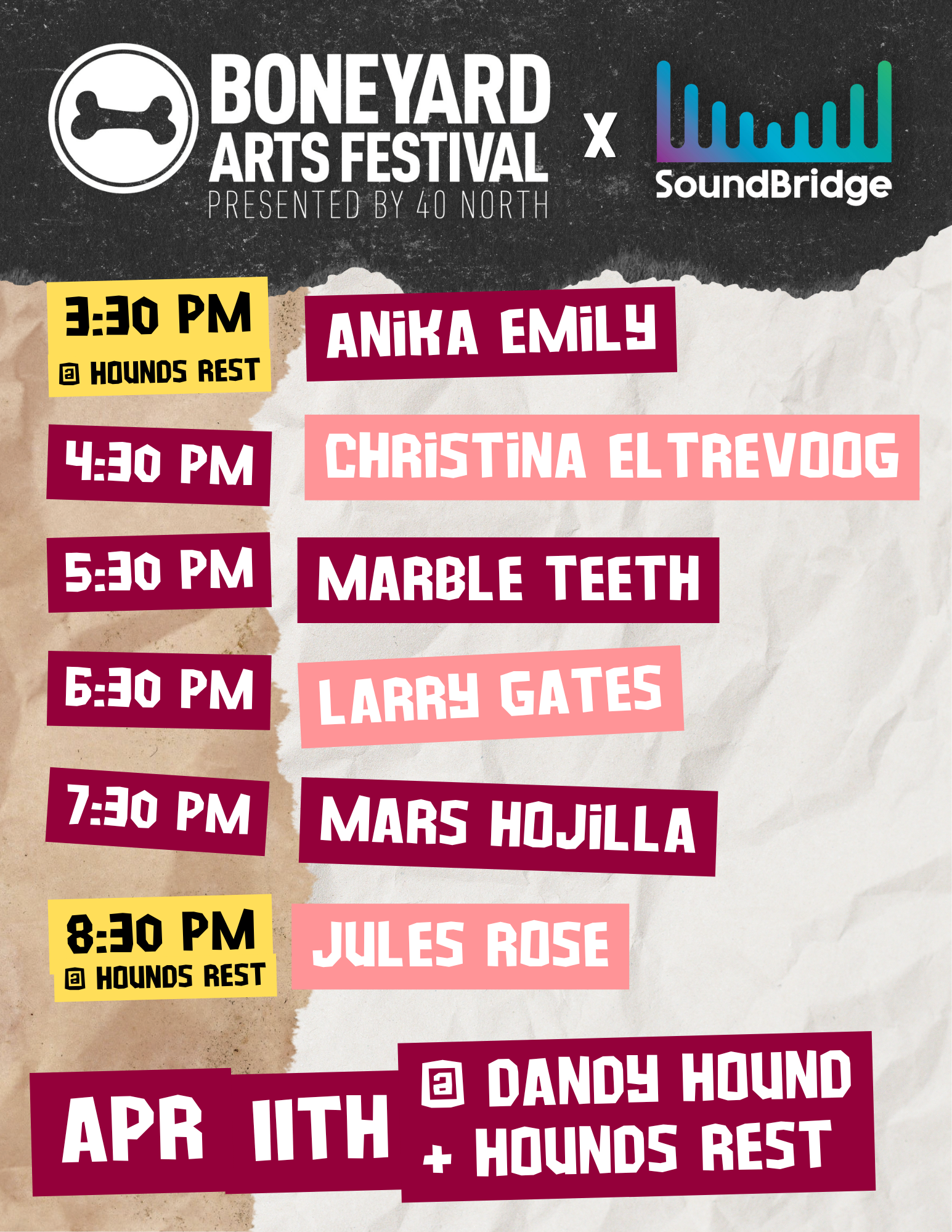 In conjunction with 40 North and Soundbridge Foundation, Hound's Rest is proud to support the Boneyard Arts Festival! Come see art displays by local artists across all three venues: Hound's […]